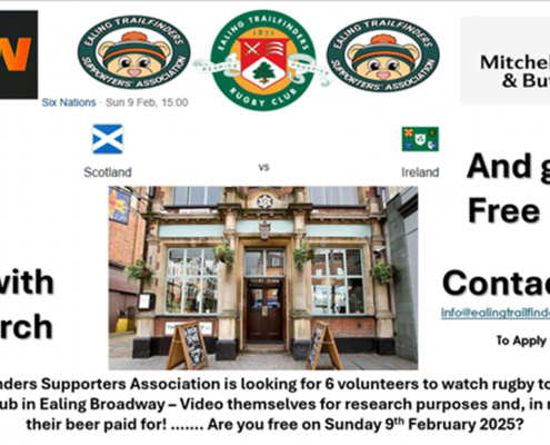 Six Volunteers Needed To Watch Rugby on Sunday 9th Feb